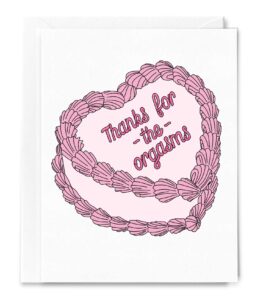 Surprise Hit? Thanks for the Orgasms Greeting Card. When it came time to design last year’s Valentine’s Day collection, I wanted to create a card that featured a vintage cake, as they were growing in popularity. At first I was worried the card would be too raunchy for my buyers, but it wound up being a huge hit! One of my national retailers said it was their top-selling Valentine’s Day card last year.