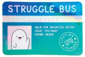 Current Bestseller? All aboard the Struggle Bus sticker! Everyone relates to this. We all have hard times unfortunately, but it helps knowing we’re not the only ones. This lets people know that it’s normal to be struggling, and its cheeky joke lifts your spirits. The struggle is real!