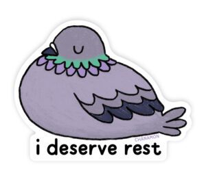 Surprise Hit? The I Deserve Rest Pigeon sticker is definitely a message people need to hear, but I was surprised that the pigeon illustration worked. I have a love-hate relationship with birds (love drawing them, hate being near them), so I can’t judge how others feel about them. I guess everyone can relate to a cozy, tired pigeon that just wants to relax.