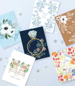 “We just did a save-the-date with a pink-and-red color scheme as the couple sent them out around Valentine’s Day. However, that same color palette will be used alongside an emerald green for their December wedding, which is so fun and cheerful, and definitely something we weren’t seeing a few years ago!”