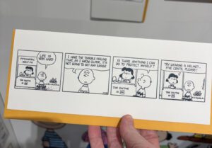 Bill Muller at Big Wheel Press is printing classic Peanuts comics — in letterpress, no less! On the back find the original print date — as well as the price of eggs, milk and a gallon of gasoline.