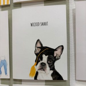 Don’t be afraid to go regional — this k. Patricia Designs card speaks “smahtly” to both locals and visitors.
