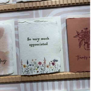 Nearly every card I looked at from Carissa Potter of People I’ve Loved, one of Stationery Trends’ Makers to Watch in 2026, spurs a wonderful (and unforgettable) exchange.