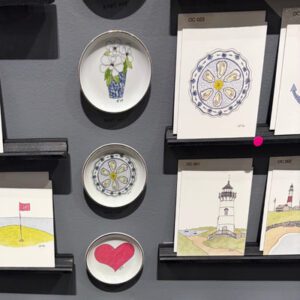 This charming handpainted range is sensational on stationery, but ravishing on ring dishes! Thomasin just keeps adding gorgeous new designs — including the timely oyster dish smack dab in the center.